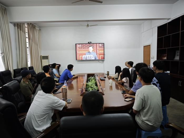 上午9时,学院党委书记康振辉及党政办、组织员、辅导员、教务员及青年教师、留校学生代表等齐聚207会议室,通过大屏幕集中收看纪念大会和阅兵仪式直播。庄严的国歌声中,全体师生肃立致敬,目光坚定;分列式铿锵的步伐、新型装备的亮相、战机掠过的英姿,引得现场掌声阵阵。师生们沉浸于大国荣光之中,现场氛围热烈而肃穆。